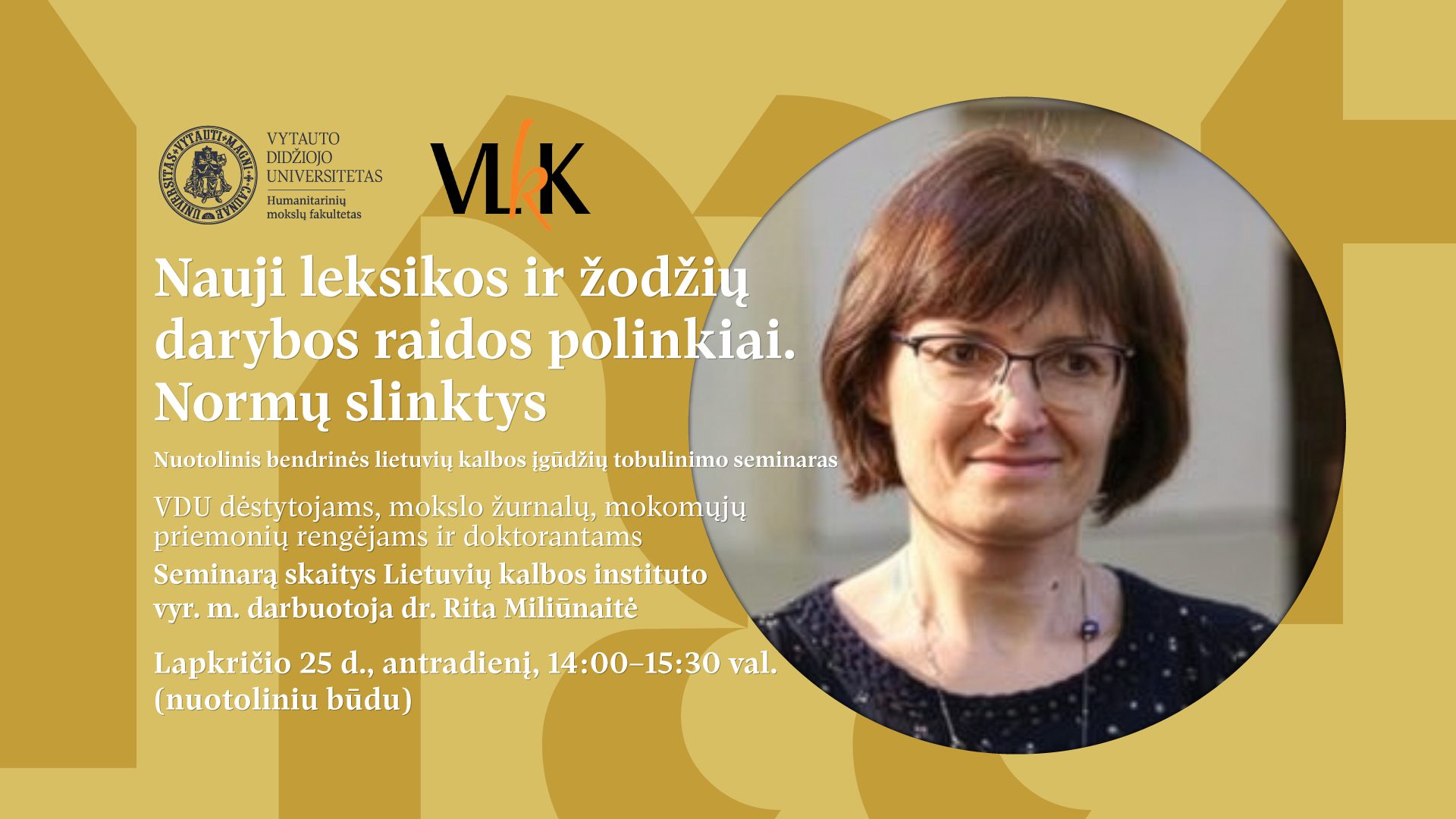 Seminarą skaitys Lietuvių kalbos instituto vyr. m. darbuotoja dr. Rita Miliūnaitė.