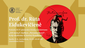 VDU Vokiečių dienų programoje visuomet atsiranda vietos ir kultūriniams akcentams – šiemet, minint F. Kafkos „Metamorfozės“ 110 metų sukaktį, prof. dr. Rūta Eidukevičienė kvies pažvelgti į šį vokiečių literatūros klasikos kūrinį visiškai naujomis akimis ir aptarti jo aktualumą mūsų dienų pasaulyje.